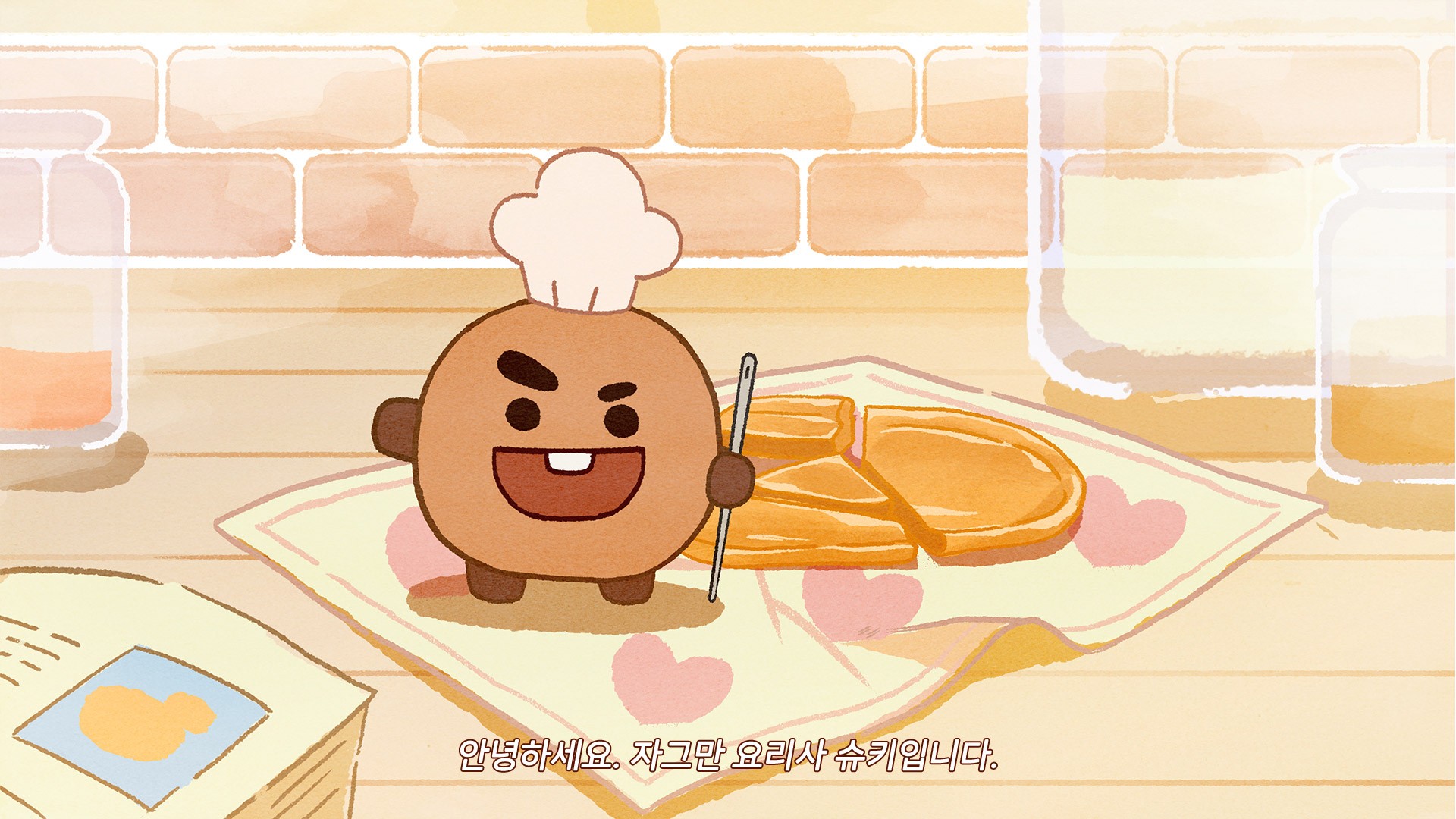 BT21의 애니메이션 콘텐츠 Shooky's Tiny Recipe의 타이틀, 자막, 썸네일 디자인을 진행했습니다.