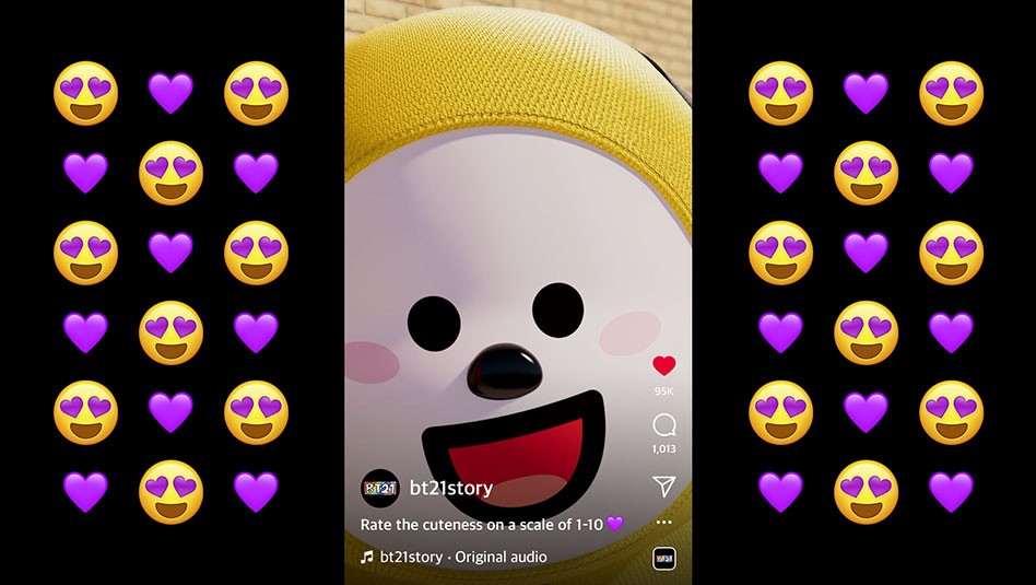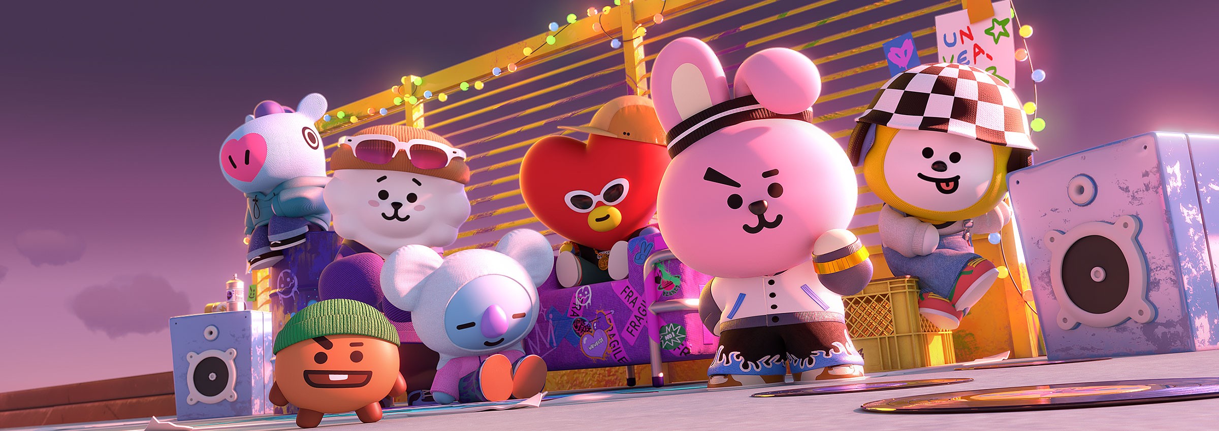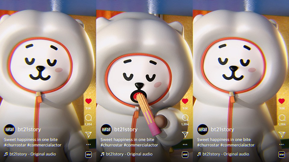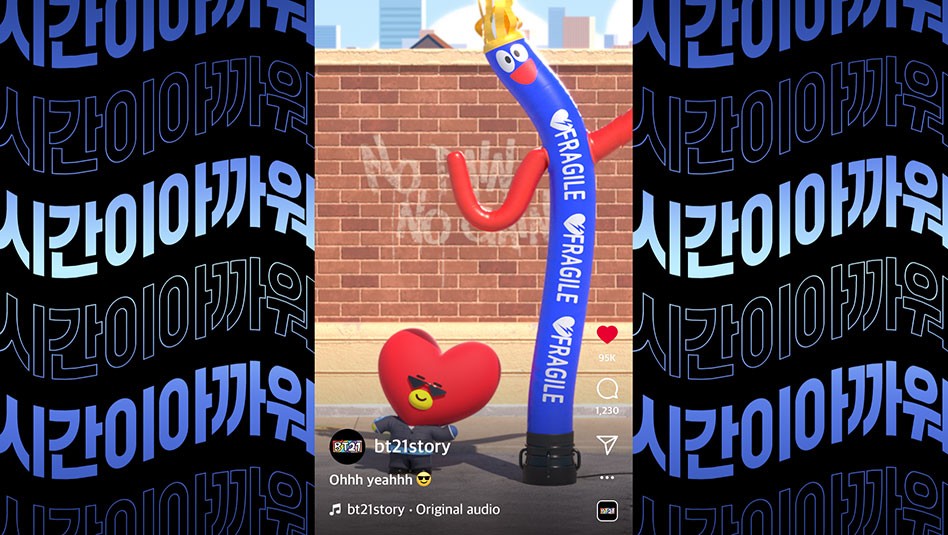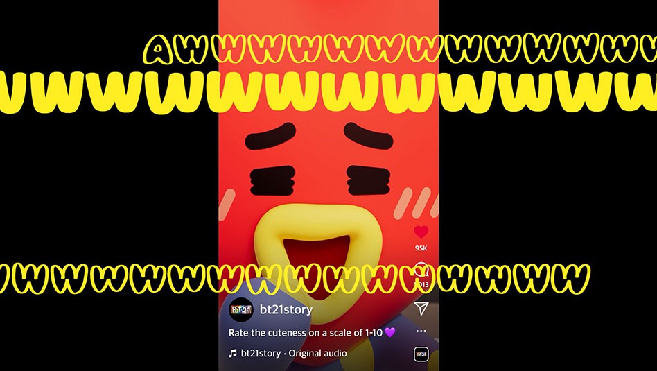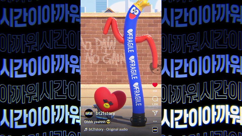 IPX는 BT21의 5주년을 기념하여 BT21 캐릭터들의 숨겨진 랩과 댄스 실력을 담은 음원과 뮤직비디오를 제작했습니다. 각 캐릭터의 개성을 가사와 3D 영상에 녹여 매력을 극대화했으며 랩 파트에서는 캐릭터별 스토리에 맞춰 다양한 컨셉의 2D 그래픽을 활용했습니다. 랩이 무엇인지 보여주겠다는 RJ, 사랑을 전파하기 위해 우주에서 온 타타, 뜨거운 불 속에서 태어나 두려울 게 없는 슈키, 길에서 버려졌던 유기견 치미까지 각 캐릭터의 서사와 세계관이 팬들에게 더욱 생생하게 전달될 수 있도록 각기 다른 톤앤무드의 그래픽을 제작했습니다.